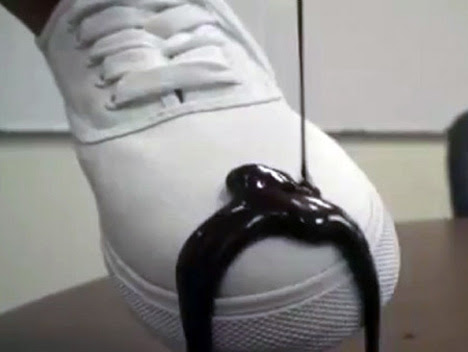 letting chocolate syrup roll off of your tennis shoes, too. According to